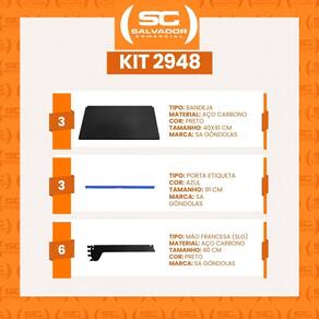 Kit 3 Bandejas Prateleiras 40x91 P/gôndola New Plus Preta Porta Etiquetas Azul - SA Gôndolas