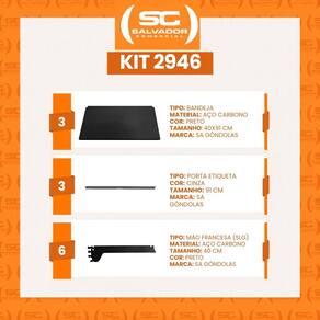 Kit 3 Bandejas Prateleiras 40x91 P/gôndola New Plus Preta Porta Etiquetas Cinza - SA Gôndolas