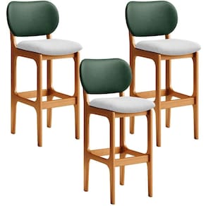 Amplamente sofisticado, o Kit 3 Banquetas Alta Bar Cozinha Sala Jantar Betta L02 Imbuia Facto Verde Linho Cinza - Lyam Decor irá agregar ainda mais valor em sua decoração!! Sendo capaz de compor muito bem o ambiente, é produzido com materiais de excelente qualidade, a resistente estrutura em madeira de Taeda, na cor imbuia, conta com apoio para os pés (que garante maior ), além do assento e encosto estofados super confortáveis e convidativos, que são revestidos em tecido Facto e Linho, composição extremamente elegante.
