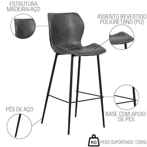 - Banqueta para diversos ambientes: cozinha, bancada, área gourmet, bistrô.