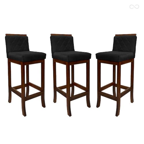 Apresentamos a banqueta Nice, feita com madeira maciça de reflorestamento e acabamento em verniz. Seu assento preenchido com espuma D26 e encosto com espuma D23 garantem conforto duradouro. O encanto adicional vem da costura matelassê no encosto, enquanto o revestimento em suede adiciona uma sensação de luxo. Adapta-se perfeitamente a qualquer espaço, adicionando elegância e conforto instantaneamente. CARACTERÍTICAS TÉCNICAS: - Produzido em Madeira Maciça de Reflorestamento; - Acabamento em Verniz na cor Castanho; - Assento Preenchido com Espuma D26; - Encosto Preenchido com Espuma D23; - Encosto com Costura Matelassê; - Revestimento em Suede na cor Preto. *Indicada para Bancadas/Mesas com Alt. 100/105 cm. *PRODUTO ENVIADO MONTADO. INFORMAÇÕES TÉCNICAS: Altura Total: 102 cm Altura até Assento: 75 cm Altura até Travessa: 23 cm Altura Encosto: 35 cm Largura Assento: 38 cm Largura Estrutura: 36 cm Profundidade Total: 42 cm Profundidade Assento: 41 cm Peso: 7 kg *Kit Composto por 3 Banquetas Nice. INFORMAÇÕES ADICIONAIS:ATENÇÃO: Móvel produzido em madeira maciça natural podendo ocorrer mudança no tom da madeira conforme o produto;*Conferir se o produto está de acordo com o que comprou, produto danificado não será aceito troca;**As imagens ambientadas são meramente ilustrativas e podem apresentar itens que não compõe o produto. As cores do produto podem variar de acordo com o monitor, a iluminação do ambiente ou sua percepção visual;***Limpeza deve ser feita com pano macio e seco ou levemente umedecido com água e sabão neutro. Não devem ser utilizados abrasivos como palha de aço e objetos cortantes;Garantia para defeitos de fabricação conforme Código de Defesa do Consumidor. Marca: CCS Interiores