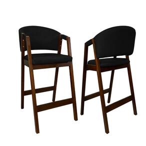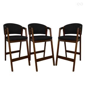 CARACTERÍSTICAS TÉCNICAS: - Produzido em Madeira Maciça; - Acabamento Verniz na Cor Pinhão; - Assento com Espuma D26; - Encosto com Espuma D23; - Revestido em Tecido Material Sintético na Cor Preto.