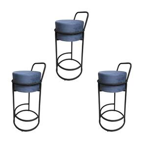 Kit 3 Banquetas Alta Redonda Base Preta Veludo - Cinza