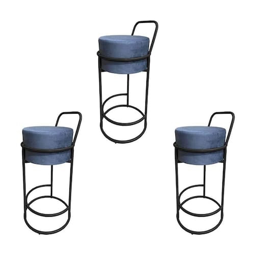 AS IMAGENS SÃO MERAMENTE ILUSTRATIVAS E PODEM SOFRER VARIAÇÕES DE COR E PEQUENOS DETALHES DE ACORDO COM O SEU MONITOR, ILUMINAÇÃO DO AMBIENTE E ATÉ MESMO A SUA PERCEPÇÃO 3 Banquetas Alta Redonda Base Preta Veludo Cinza