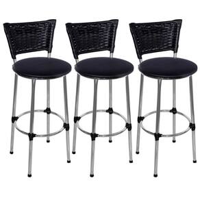 Banqueta Alta Cromada Junco Preto com Assento Preto Fortmix Seja para acompanhar um café rápido no início do dia ou aquela confraternização especial com os amigos, a Banqueta Alta com Encosto será uma grande aliada na composição do seu espaço. Modelo alta, ela é ideal para acompanhar bancadas e balcões, seja na sala de jantar, espaço de churrasqueira ou até mesmo em seu estabelecimento comercial. Com design simples que conta com cor sóbria e junco, a peça embeleza o seu espaço ao mesmo tempo que garante a comodidade ideal, afinal, o assento preenchido em espuma recebe superbem o corpo além do suporte para os pés. Produto que faz toda diferença no seu ambiente. Características da Banqueta Alta com Encosto Juncado Cor da Estrutura: Cromada Cor do Assento: Preto Capacidade (kg): 120 kg Material da estrutura: Tubos de Aço carbono (7/8 de polegada) Material do assento: MDF e Espuma Encosto: Junco Preto Dimensões da Banqueta Alta com Encosto Juncado Altura do assento até o chão (cm): 72 Cm Altura do encosto até o chão (cm): 95 Cm Diâmetro do assento: 32 Cm Conteúdo da Embalagem: 03 Banqueta Alta com Encosto Juncado Dicas Não deixe suas banquetas expostas ao sol por mais de 4 horas. Não use produtos abrasivos na limpeza de suas Banquetas. Usar um pano umedecido na limpeza da Banqueta e, logo em seguida, seque-as com um pano seco. A tonalidade da cor pode variar de acordo com o lote do fabricante e/ou as configurações de seu monitor. *Imagens meramente ilustrativas Garantia 3 Meses contra defeito de fabricação