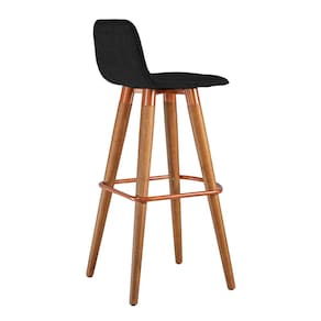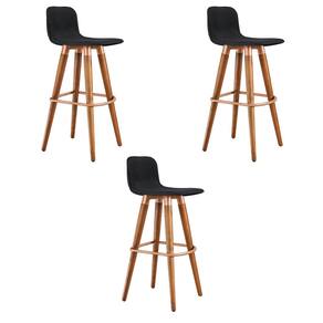 Kit 3 Banquetas Altas Luxo Linea Aço Cobre Linho Preto Base Carvalho