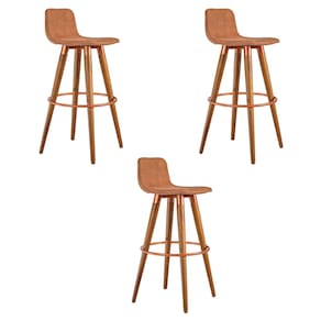 Kit 3 Banquetas Altas Luxo Versatil Aço Cobre Linho Terracota Base Carvalho - Marrom