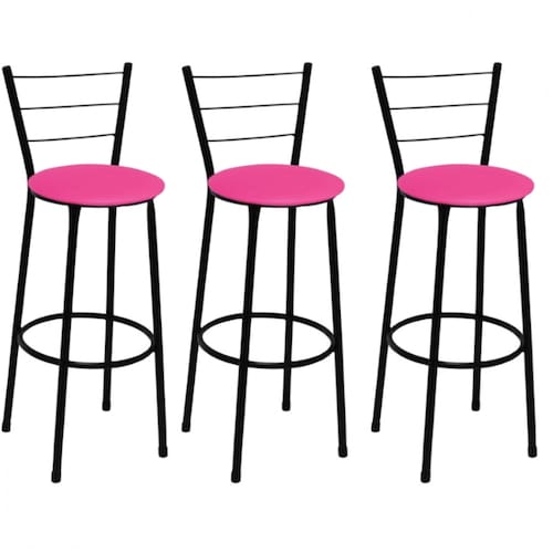 Banqueta Alta Itália Preta com Assento Rosa Fortmix Seja para acompanhar um café rápido no início do dia ou aquela confraternização especial com os amigos, a Banqueta Alta com Encosto será uma grande aliada na composição do seu espaço. Modelo alta, ela é ideal para acompanhar bancadas e balcões, seja na sala de jantar, espaço de churrasqueira ou até mesmo em seu estabelecimento comercial. Com design simples que conta com cor sóbria, a peça embeleza o seu espaço ao mesmo tempo que garante a comodidade ideal, afinal, o assento preenchido em espuma recebe superbem o corpo além do suporte para os pés. Produto que faz toda diferença no seu ambiente. Características da Banqueta Alta com Encosto Cor da Estrutura: Preta Cor do Assento: Rosa Capacidade (kg): 120 kg Material da Estrutura: Tubos de Aço carbono (7/8 de polegada) Material do Assento: MDF e Espuma Encosto: Arame Dimensões da Banqueta Alta com Encosto Altura do assento até o chão (cm): 72 Cm Altura do encosto até o chão (cm): 95 Cm Diâmetro do assento: 32 Cm Conteúdo da Embalagem: 03 Banqueta Alta com Encosto Dicas Não deixe suas banquetas expostas ao sol por mais de 4 horas. Não use produtos abrasivos na limpeza de suas Banquetas. Usar um pano umedecido na limpeza da Banqueta e, logo em seguida, seque-as com um pano seco. A tonalidade da cor pode variar de acordo com o lote do fabricante e/ou as configurações de seu monitor. *Imagens meramente ilustrativas Garantia 3 Meses contra defeito de fabricação