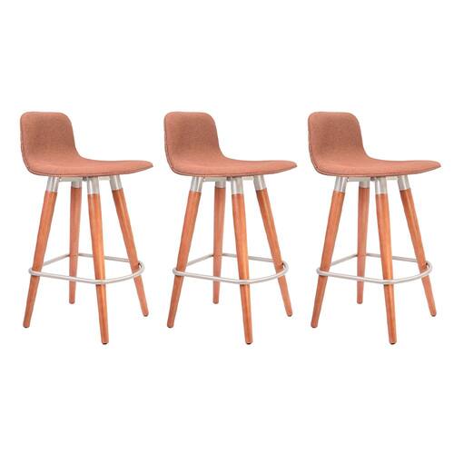Kit 3 Banquetas Baixas Linea Aço Champanhe para Cozinha Ilha Gourmet Area Lazer - Terracota Assento - Laranja