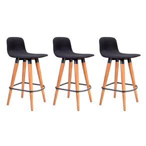 Kit 3 Banquetas Baixas Linea Aço Preto para Cozinha Ilha Gourmet Area Lazer Decor - Preto Assento