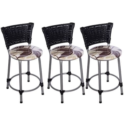 Banqueta Baixa Prata Junco Preto com Assento Floral Marrom Fortmix Seja para acompanhar um café rápido no início do dia ou aquela confraternização especial com os amigos, a Banqueta Baixa com Encosto será uma grande aliada na composição do seu espaço. Modelo baixa, ela é ideal para acompanhar bancadas e balcões, seja na sala de jantar, espaço de churrasqueira ou até mesmo em seu estabelecimento comercial. Com design simples que conta com cor sóbria, a peça embeleza o seu espaço ao mesmo tempo que garante a comodidade ideal, afinal, o assento preenchido em espuma recebe superbem o corpo além do suporte para os pés. Produto que faz toda diferença no seu ambiente. Características da Banqueta Baixa com Encosto Cor da Estrutura: Prata Cor do Assento: Floral Marrom Capacidade (kg): 120 kg Material da estrutura: Tubos de Aço carbono (7/8 de polegada) Material do assento: MDF e Espuma Encosto: Junco Dimensões Altura do assento até o chão (cm): 47 Cm Altura do encosto até o chão (cm): 69 Cm Diâmetro do assento: 32 Cm Conteúdo da Embalagem: 03 Banqueta Baixa com Encosto Dicas Não deixe suas banquetas expostas ao sol por mais de 4 horas; Não use produtos abrasivos na limpeza de suas Banquetas; Usar um pano umedecido na limpeza da Banqueta e, logo em seguida, seque-as com um pano seco. A tonalidade da cor pode variar de acordo com o lote do fabricante e/ou as configurações de seu monitor. *Imagens meramente ilustrativas Garantia 3 Meses contra defeito de fabricação