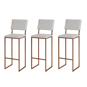 Kit 3 Banquetas Com Encosto Industrial E Moderna Nina Cobre E Corino Branco