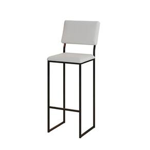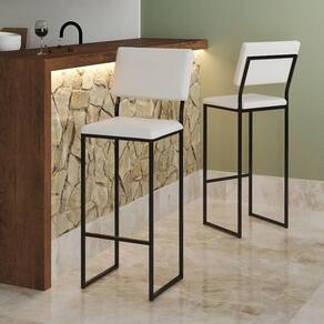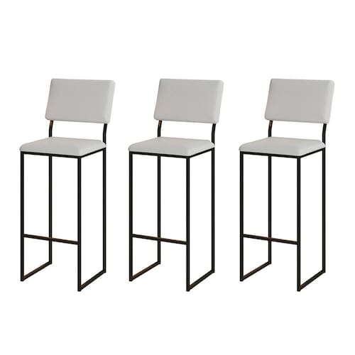 AS IMAGENS SÃO MERAMENTE ILUSTRATIVAS E PODEM SOFRER VARIAÇÕES DE COR E PEQUENOS DETALHES DE ACORDO COM O SEU MONITOR, ILUMINAÇÃO DO AMBIENTE E ATÉ MESMO A SUA PERCEPÇÃO VISUAL.Kit 3 Banquetas com Encosto Industrial e Moderna Nina Preto e Corino Branco