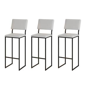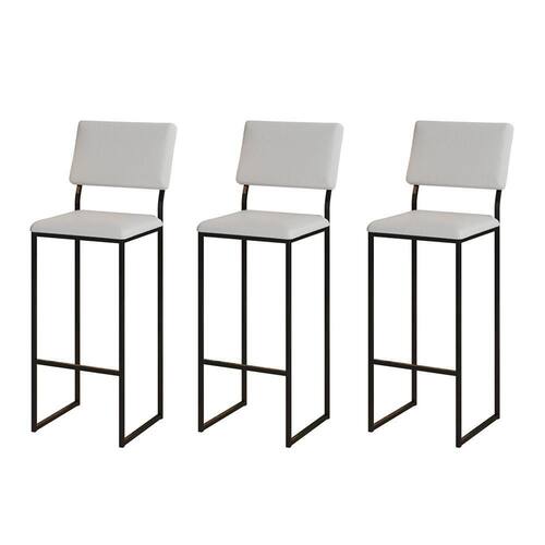 Kit 3 Banquetas Com Encosto Industrial E Moderna Nina Preto E Corino Branco