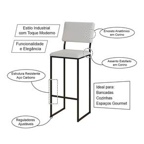 AS IMAGENS SÃO MERAMENTE ILUSTRATIVAS E PODEM SOFRER VARIAÇÕES DE COR E PEQUENOS DETALHES DE ACORDO COM O SEU MONITOR, ILUMINAÇÃO DO AMBIENTE E ATÉ MESMO A SUA PERCEPÇÃO VISUAL.Kit 3 Banquetas com Encosto Industrial e Moderna Nina Preto e Corino Branco