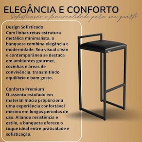 Banqueta Metalon Industrial Sofisticação em Cada DetalheA Banqueta Metalon foi criada para quem busca unir design moderno, resistência e conforto em um só produto. Sua estrutura em metalon com pintura eletrostática garante alta durabilidade e acabamento impecável, mantendo o brilho e a cor mesmo com o uso contínuo.