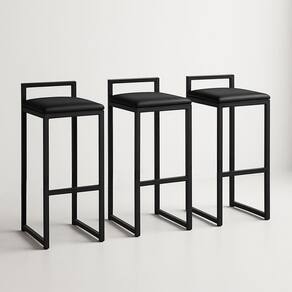 Kit 3 Banquetas Corino Ferro Cozinha Balcão Alta Bistro Preto
