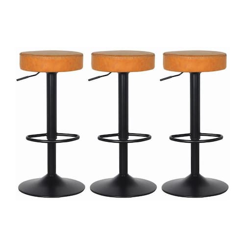 Kit 3 Banqueta Cadeiras Altas Com Encosto Baixo Estofado Giratória Regulagem De Altura Para Cozinha Americana Balcão Bancada Bar Pub Bistrô Ilha Area Gourmet Luxo Moderna Viena Caramelo Vintage