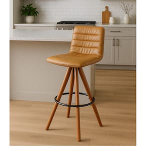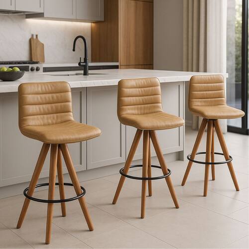 Kit 3 Banquetas Lucy Giratória em Madeira Maciça na Cor Castanho – Exclusiva Courino Kaki -