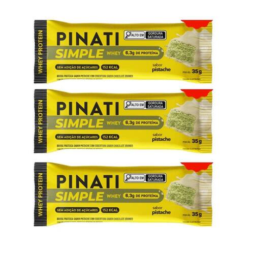 Kit 3 Barra Simple Whey Protein 10G Pistache Pinati - Pistache com Chocolate Branco - 3 unidades