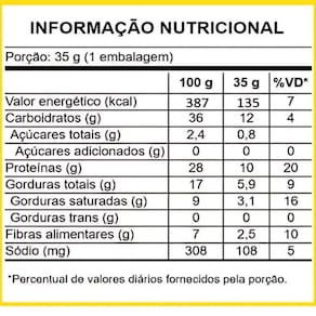 Alergênicos: contém amendoim, derivados de leite e soja. Pode conter traços de amêndoas, aveia, avelãs, castanhas, castanha-do-Brasil, castanha de caju, macadâmia, nozes, pecã, pistache, ovos e soja. Contém lactose. Não contém glúten.