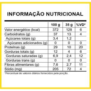 Contém amendoim, derivados de leite e derivados de soja. Pode conter amêndoas, aveia, avelãs, castanhas, castanha do brasil, castanha de caju, macadâmia, nozes, pecã, pistache, ovos e soja. Contém lactose. Não contém glúten.