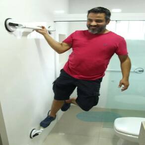 A barra de apoio foi desenvolvida para suportar uma carga de até 60KG ela é recomendada para pessoas com a mobilidade reduzida e para aqueles que desejam um pouco mais de segurança.