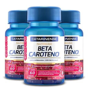 Kit 3 beta caroteno catarinense pharma 60 cápsulas a vitamina a é uma poderosa aliada da visão, no funcionamento do sistema imune e metabolismo do ferro entre outras importantes funções no organismo humano. É sempre importante manter os níveis saudáveis dessa vitamina. Ingredientes: Betacaroteno. Antiumectantes: celulose microcristalina ins 460i e carbonato de cálcio ins 170i e estearato de magnésio ins 470ii , gelificante gelatina ins 428 , corantes: dióxido de titânio ins 171 , vermelho 40 ins 129 , amarelo crepúsculo ins 110 , amarelo de quinoleína ins 104 e azul brilhante ins 133 . Não contém glúten. Recomendação de uso: 1 cápsula. Ingerir com água. Liberado de inserção de código da anvisa com base na rdc nº 240 de 2018 Marca: Não Informado
