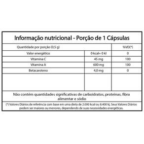 Além da vitamina A, o composto também é enriquecido com vitamina C, que confere benefícios na prevenção de doenças crônicas não transmissíveis como o câncer, exercendo fator protetor as células. A vitamina C potencializa a ação antioxidante do betacaroteno e também reforça nosso sistema imunológico. Além disso, melhora o processo de cicatrização e é essencial para a síntese de colágeno no corpo humano.