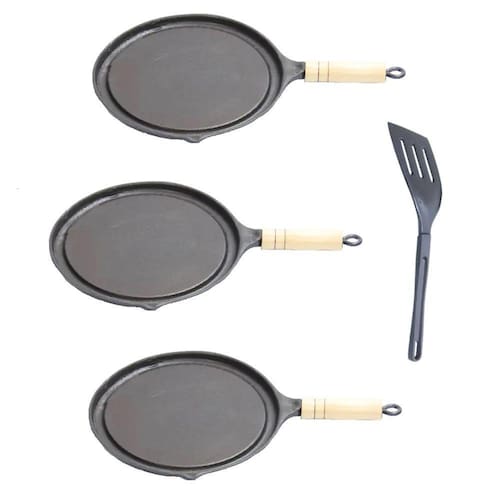 03 Bifeteira Antiaderente Redonda Lisa Cabo Madeira 22cm.