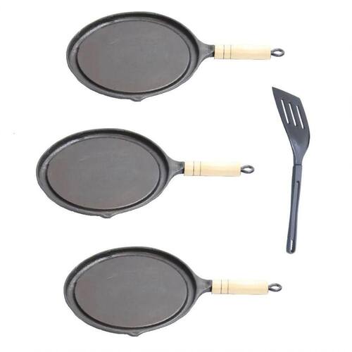 03 Bifeteira Antiaderente Redonda Lisa Cabo Madeira 22cm.