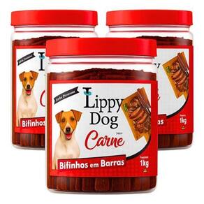 Dê ao seu melhor amigo o sabor irresistível da Carne com o Kit 3 Bifinho Lippy Dog Carne 1 Kg.