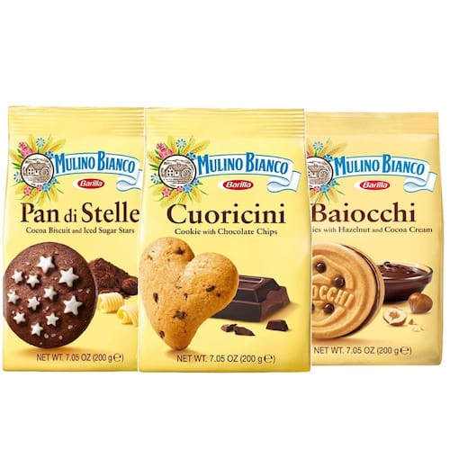 Kit 3 Biscoitos Baiocchi Pan Cuoricini MULINO BIANCO 200g Kit Exclusivo para Amantes de Biscoitos Finos: Baiocchi, Pan di Stelle e Cuoricini, a Trindade de Sabor que Você Merece Deguste a combinação perfeita de sabores e texturas com o nosso Kit Exclusivo Mulino Bianco, reunindo três clássicos irresistíveis: Baiocchi: Delicados biscoitos com recheio cremoso de avelã, uma explosão de sabor a cada mordida. Pan di Stelle: Biscoitos de cacau com estrelas de açúcar, um clássico italiano que encanta gerações. Cuoricini: Biscoitos amanteigados em formato de coração, perfeitos para acompanhar um café ou chá. Descubra a magia da Mulino Bianco: Ingredientes Selecionados: Qualidade e sabor em cada biscoito, com ingredientes cuidadosamente selecionados. Embalagem Prática: Ideal para ter sempre à mão, seja em casa, no trabalho ou em viagens. Versatilidade: Perfeitos para qualquer ocasião, do café da manhã ao lanche da tarde. Presente Ideal: Surpreenda amigos e familiares com um presente cheio de sabor e requinte. Uma experiência gastronômica que você não vai esquecer Ficha Técnica: Produto: Kit 3 Biscoitos com Chocolate Mulino Bianco Marca: Mulino Bianco Peso: 200g cada pacote Ingredientes: Baiocchi: Farinha de trigo, açúcar, óleo vegetal, recheio de avelã, leite em pó, , ovos, aromas, sal. Pan di Stelle: Farinha de trigo, açúcar, óleo vegetal, cacau em pó, chocolate, , leite em pó, , ovos, aromas, sal. Cuoricini: Farinha de trigo, açúcar, óleo vegetal, , leite em pó, ovos, aromas, sal. Informações Nutricionais: Consultar embalagem individual de cada produto. Alérgicos: Contém trigo, leite, ovos e derivados de avelã. Pode conter traços de outros frutos secos. Kit Mulino Bianco: A combinação perfeita de sabores em um só lugar