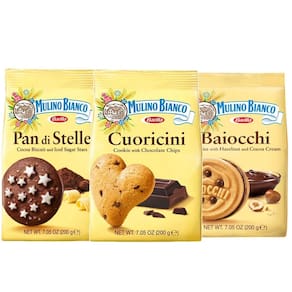 Kit 3 Biscoitos Baiocchi Pan Cuoricini MULINO BIANCO 200g Kit Exclusivo para Amantes de Biscoitos Finos: Baiocchi, Pan di Stelle e Cuoricini, a Trindade de Sabor que Você Merece Deguste a combinação perfeita de sabores e texturas com o nosso Kit Exclusivo Mulino Bianco, reunindo três clássicos irresistíveis: Baiocchi: Delicados biscoitos com recheio cremoso de avelã, uma explosão de sabor a cada mordida. Pan di Stelle: Biscoitos de cacau com estrelas de açúcar, um clássico italiano que encanta gerações. Cuoricini: Biscoitos amanteigados em formato de coração, perfeitos para acompanhar um café ou chá. Descubra a magia da Mulino Bianco: Ingredientes Selecionados: Qualidade e sabor em cada biscoito, com ingredientes cuidadosamente selecionados. Embalagem Prática: Ideal para ter sempre à mão, seja em casa, no trabalho ou em viagens. Versatilidade: Perfeitos para qualquer ocasião, do café da manhã ao lanche da tarde. Presente Ideal: Surpreenda amigos e familiares com um presente cheio de sabor e requinte. Uma experiência gastronômica que você não vai esquecer Ficha Técnica: Produto: Kit 3 Biscoitos com Chocolate Mulino Bianco Marca: Mulino Bianco Peso: 200g cada pacote Ingredientes: Baiocchi: Farinha de trigo, açúcar, óleo vegetal, recheio de avelã, leite em pó, , ovos, aromas, sal. Pan di Stelle: Farinha de trigo, açúcar, óleo vegetal, cacau em pó, chocolate, , leite em pó, , ovos, aromas, sal. Cuoricini: Farinha de trigo, açúcar, óleo vegetal, , leite em pó, ovos, aromas, sal. Informações Nutricionais: Consultar embalagem individual de cada produto. Alérgicos: Contém trigo, leite, ovos e derivados de avelã. Pode conter traços de outros frutos secos. Kit Mulino Bianco: A combinação perfeita de sabores em um só lugar