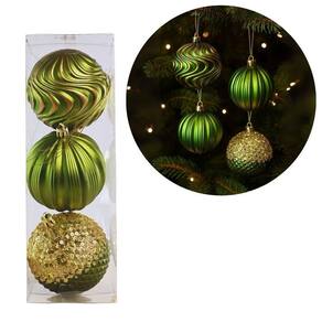 Encante sua decoração natalina com este kit luxo com 3 bolas decorativas em tons de verde com dourado ouro, que combinam sofisticação e brilho em cada detalhe. O conjunto traz três modelos com texturas diferentes, com acabamentos que mesclam: