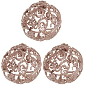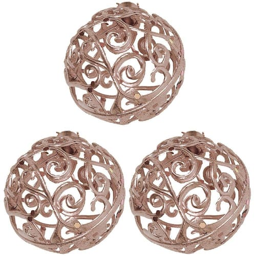 03 unidades Bola Vazada Natal Rosê Gold Metalizado Fosco Arabesco 9cm – Magizi