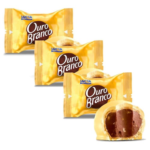Bombom Lacta Ouro Branco - Irresistível Cobertura Branca e Recheio Cremoso Aproveite a sofisticada combinação de sabores do clássico bombom Ouro Branco da Lacta! Com uma deliciosa cobertura de chocolate branco crocante, que envolve um recheio incrível de chocolate ao leite cremoso, é impossível resistir a essa explosão de textura e sabor. Perfeito para adoçar o seu dia, compartilhar ou presentear alguém especial, Ouro Branco tem o equilíbrio perfeito entre o sabor suave do chocolate branco e a intensidade do recheio. Surpreenda-se a cada mordida com essa experiência única, que continua encantando paladares há gerações! Alérgicos: Contém amendoim e derivados de soja, trigo, leite e cevada. Pode conter amêndoa, castanha-de-caju, avelã, aveia, centeio e látex natural. Contém glúten.