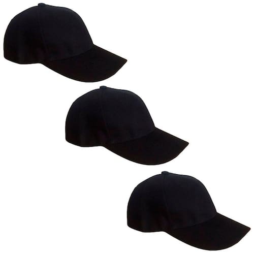 Kit contendo 3 Bonés Básicos Unisex Liso Preto Tamanho 58 cm.