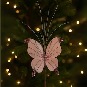 Encante sua decoração de Natal com a delicadeza e o brilho da Borboleta Pick Decorativa com Glitter Rosê. Com design elegante e acabamento sofisticado, ela é perfeita para compor árvores de Natal, guirlandas, arranjos ou centros de mesa, trazendo um toque de leveza e charme festivo ao ambiente.