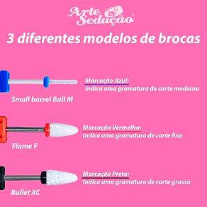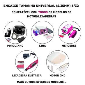 As brocas possuem diâmetro de aproximadamente 2.35mm 3/32'' polegadas que se encaixa na maioria das máquinas elétricas de manicure.