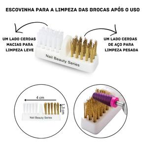 Kit 3 Brocas Cerâmica Unhas De Gel + Escovinha Aço Limpeza