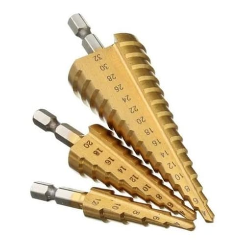 Kit 3 brocas escalonada aço profissional para 12mm/20mm/32mm