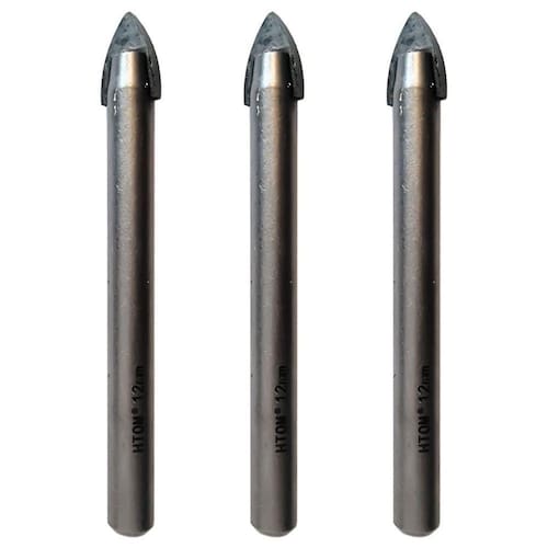 Kit 3 Brocas para Furar Vidro 12mm Porcelanato Cerâmica Metal Duro Profissional HTOMBroca para Furar Vidro HTOM Indicada para furação de: vidros exceto vidros temperados , azulejos, pastilhas, cerâmicas, louças e porcelanas.- Marca: HTOM- Referência: HTOM42516-3X- Kit exclusivo com 3 brocas para video 12mm- Diâmetro do furo: 12mm 1/2 Pol. - Comprimento total: 100mm- Ponta de metal duro resistente- Indicada para furação de: vidros exceto vidros temperados , azulejos, pastilhas, cerâmicas, louças e porcelanas.- Para uso em furadeiras- Garantia de qualidade