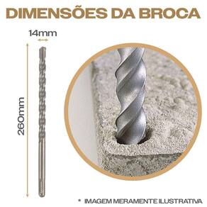 Kit com 3 Brocas SDS Plus 14mm x 260mm Metal Duro Widea para Furar Concreto com Martelete Eda Profissional - Marca: Eda Profissional - Kit com 3 brocas - Diâmetro: 14mm - Comprimento: 260mm - Encaixe: SDS Plus - Ponta de metal duro com tungstênio vídea - Corpo em aço carbono temperado - Ideal para perfuração em concreto, granito, azulejo, rocha, alvenaria, rochas e pisos - Compatível com martelos rotativos que possuam encaixe SDS plus - Dureza 49 a 51 HRc que proporciona mais resistência em menos desgaste em sua haste helicoidal - Garantia: 90 dias contra defeitos de fabricação Imagem meramente ilustrativa: não representa as dimensões exatas da broca