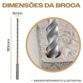 Kit 3 Brocas SDS Plus 5mm x 110mm Metal Duro Widea para Furar Concreto com Martelete Eda Profissional - Marca: Eda Profissional - Jogo exclusivo com 3 brocas - Diâmetro: 5mm - Comprimento: 110mm - Encaixe: SDS Plus - Ponta de metal duro com tungstênio vídea - Corpo em aço carbono temperado - Ideal para perfuração em concreto, granito, azulejo, rocha, alvenaria, rochas e pisos - Compatível com martelos rotativos que possuam encaixe SDS plus - Dureza 49 a 51 HRc que proporciona mais resistência em menos desgaste em sua haste helicoidal - Garantia: 90 dias contra defeitos de fabricação Imagem meramente ilustrativa: não representa as dimensões exatas da broca