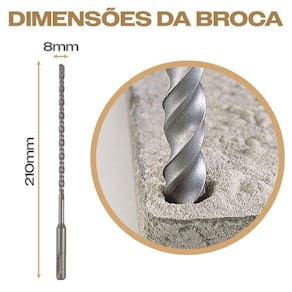 Kit 3 Brocas SDS Plus 8mm x 210mm Metal Duro Widea para Martelete Eda Profissional - Marca: Eda Profissional - Jogo exclusivo com 3 brocas - Diâmetro: 8mm - Comprimento: 210mm - Encaixe: SDS Plus - Ponta de metal duro com tungstênio vídea - Corpo em aço carbono temperado - Ideal para perfuração em concreto, granito, azulejo, rocha, alvenaria, rochas e pisos - Compatível com martelos rotativos que possuam encaixe SDS plus - Dureza 49 a 51 HRc que proporciona mais resistência em menos desgaste em sua haste helicoidal - Garantia: 90 dias contra defeitos de fabricação Imagem meramente ilustrativa: não representa as dimensões exatas da broca