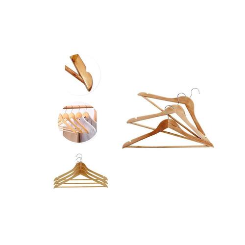 Nosso kit de cabides é feito com madeira resistente, promovendo durabilidade e resistência sem igual. Seu design clássico e elegante combina com qualquer decoração e seu revestimento suave protege suas roupas de danos.