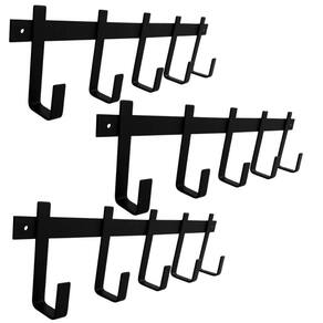 Kit 3 Cabideiros de Parede com 5 Ganchos em Aço Preto para Pendurar Roupas Mochilas Bolsas Guarda Chuva.