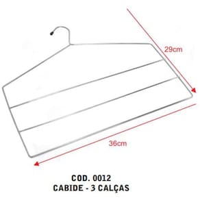 Kit 3 Cabides Para Calças Triplo Aço Cromado Reforçado Cabide de calça: Ideal para manter suas calças organizadas e sem amassados, o cabide de calça é uma peça prática e funcional. Com design ergonômico e estrutura resistente, ele possui barras ajustáveis ou presilhas, permitindo segurar a calça de forma segura e sem danificar o tecido. Pode ser em closets, guarda-roupas ou armários, garantindo que suas calças fiquem sempre bem conservadas e ao alcance das mãos. Perfeito para otimizar o espaço e facilitar a organização do seu guarda-roupa. Marca: Não Informado