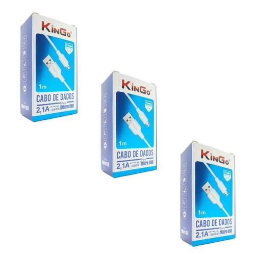 Kit 3 Cabos De Dados Carregadores Micro-Usb V8 Kingo 1M 2.1A